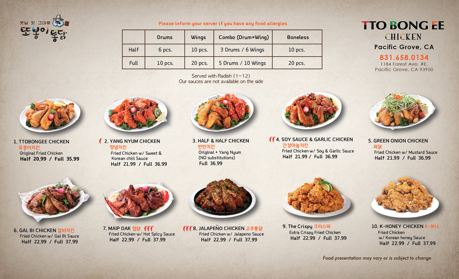 All our Ttobongee Chicken branches only use clean oil for the best taste.